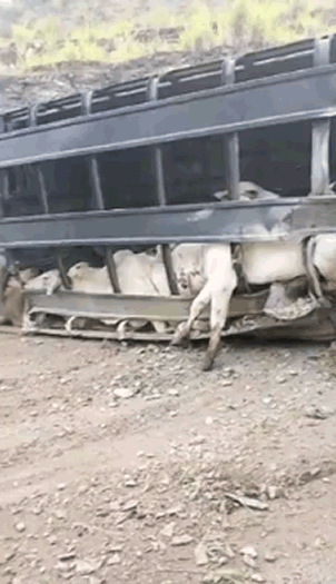 Uma carreta carregada de bois tombou na BR 365, perto da ponte sobre o Rio das Velhas, no distrito de Barra do Guaicuí, município de Várzea da Palma, Norte do estado, na manhã deste sábado (21/02). Vários animais ficaram feridos e outros bois morreram e ficaram espalhados na pista, onde o trânsito foi interrompido.